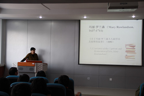 2016年11月1日下午2:30,在如心楼806澳门十大信誉好的网站报告厅,北京外国语大学博士生导师金莉教授做了题为《从玛丽・罗兰森的囚掳叙事看北美殖民地白人女性文化越界》的专题报告。