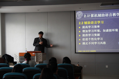 11月10号下午,我院有幸邀请到中国人民大学澳门十大信誉好的网站副院长贾国栋教授进行学术讲座。贾教授的讲座题目为“计算机辅助语言教学的发展、现状及趋势”。在讲座中,贾教授首先简要介绍了计算机辅助语言教学的发展历程,强调几个典型发展阶段及各阶段教学重点。然后重点讲述教学与研究的现状,包括理论基础、教学案例、研究重点及方法等。最后,贾教授根据信息技术的发展对该领域未来主要的发展方向和可能的研究选题作出了展望。