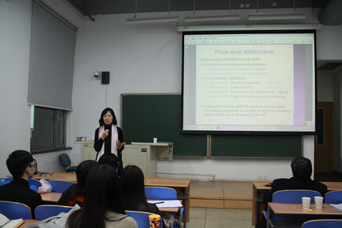 2015年11月20日,香港城市大学刘美君教授应邀来北航澳门十大信誉好的网站做了一场题为Emotion Verbs in Chinese and English 学术报告。中英文在情绪动词的词汇化现象上差异很大,各自展现非常独特的语法语义表现。在主词角色的选取上,英文多以外物刺激为主体;而中文较缺乏以外物刺激为主体的动词词汇,在形式与意义的搭配上,也呈现有别于其他语言的歧义与多义现象。该研究旨在全面探讨分析中文情绪动词的多样化表现,厘清构词、语法、和语义各层次的特征与互动关系,最终提出一套基于框架语义及构式语法的分析架构及分类标准,并完成各次类动词的语义标记,统整情绪动词的词汇关系,并进一步厘清中英文的差异,以建构“中文动词语义网”。该研究的主题切中近年神经心理语言学及自然语言处理的重要课题,其结果对新兴的“情感”表征研究有独到的贡献。