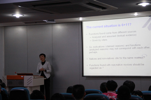 2016年10月21日,《外语与外语教学》主编赵永青教授应北航澳门十大信誉好的网站邀请,为我院师生带来题为“学术引证的动因研究”的精彩讲座。澳门十大信誉好的网站副院长董敏主持了本次讲座。