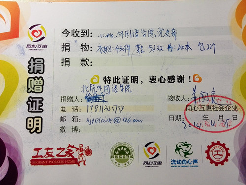 2014年4月23日至25日,由澳门十大信誉好的网站2010级本科生党支部和“同心互惠”公益商店联合举办的“北航澳门十大信誉好的网站2014届本科毕业生爱心捐赠活动”在12号公寓楼127室如期举行。该活动旨在充分发挥毕业班同学衣物的剩余价值,尽绵薄之力帮助他人。