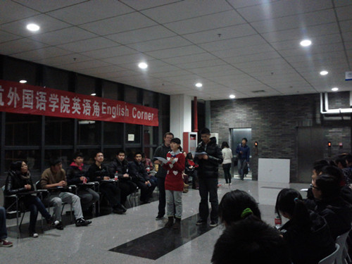 2012年11月23日,由北航澳门十大信誉好的网站学习部主办的本学期第一次英语角活动,在沙河校区教学楼1、2号楼之间的5层走廊举行。此次英语角是北航外语文化月系列活动之一。参与此次活动的有学习部的全体成员,外教Jeremy,报名英语会员的同学,外交学院sica的部分成员,总人数将近70人,规模较大。