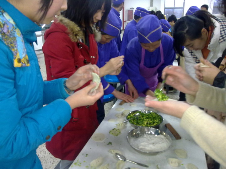 和食堂师傅一起协作包饺子